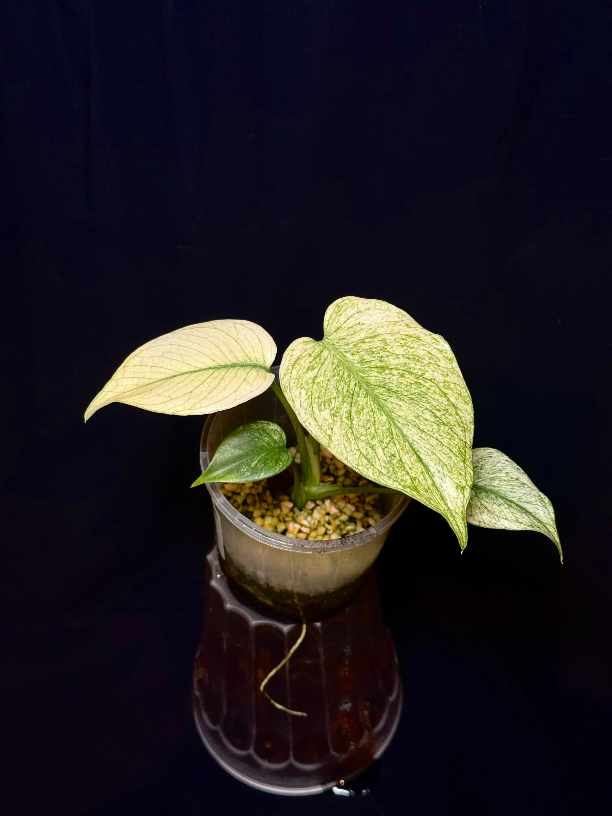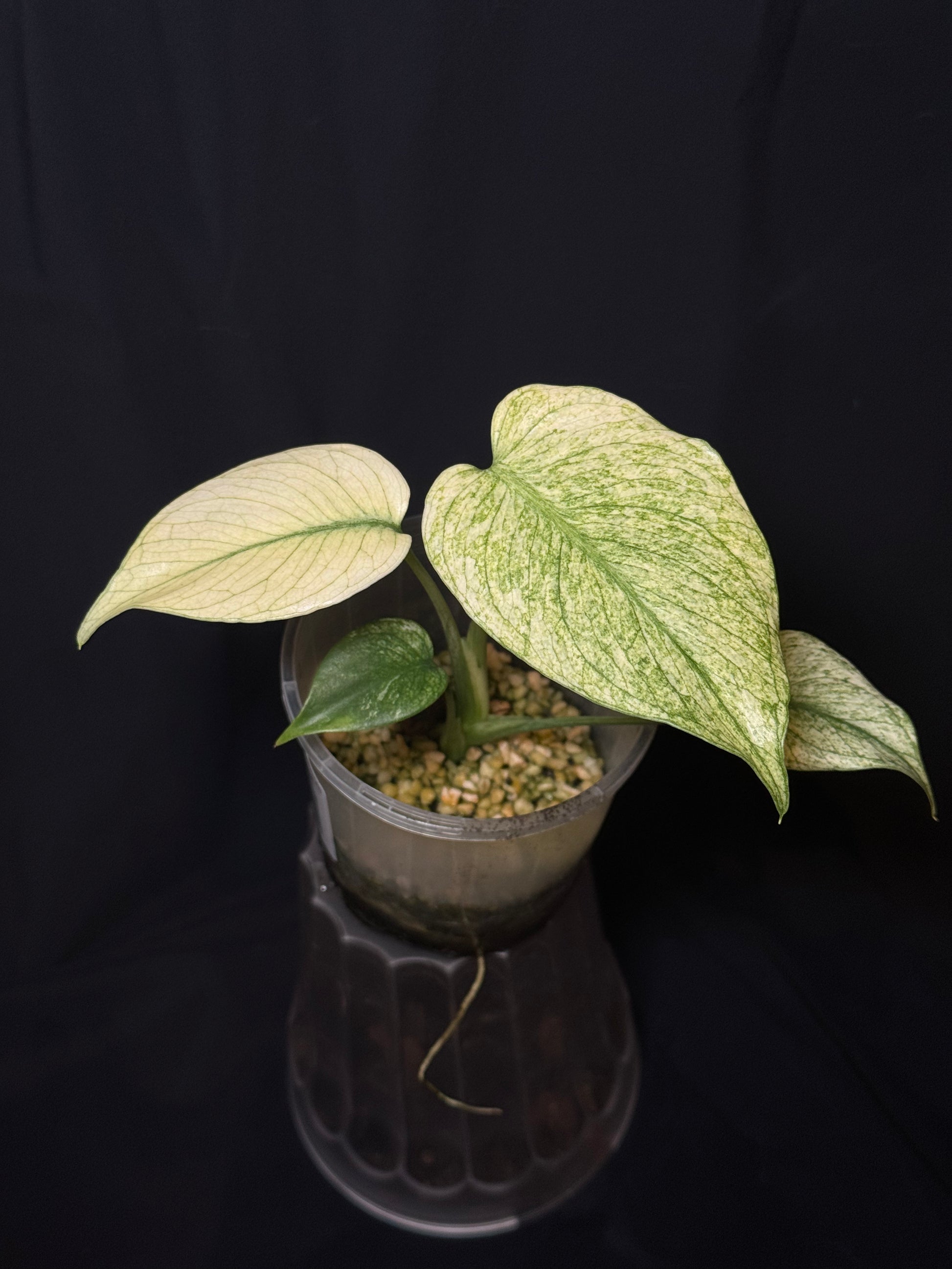 This is a stunning Monstera Deliciosa Mint Variegated, featuring soft, minty green variegation with beautifully marbled and sectoral patterns. Unlike the typical albo or Thai constellations, the mint variegation has a more delicate and pastel-like appearance, making it a rare and highly sought-after variety.